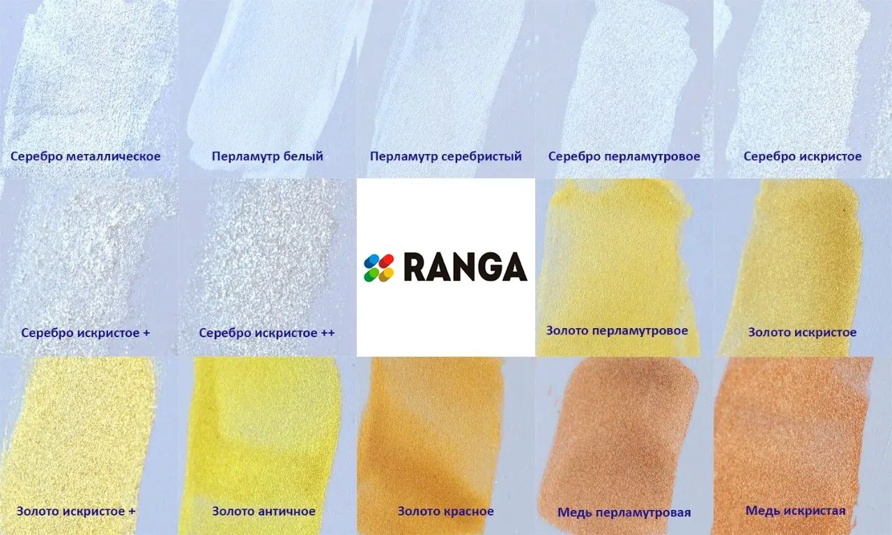 Пигментные пудры РАНГА добавляются в краски или лаки и финишные покрытия для получения металлического или перламутрового блеска на окрашиваемых изделиях.